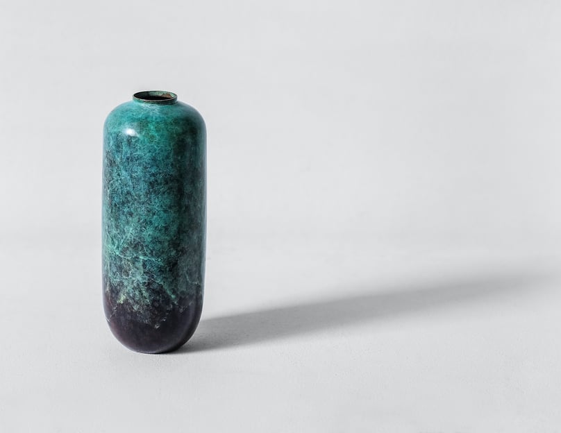 Psychedelia by Amy O’Conner is a design collection of handmade vases and other household items. O’Conner’s distinct glass finish brings a unique flair to each item, making them beautiful objects that won’t just gather dust on the mantelpiece. This set was photographed to celebrate the 15 year anniversary of the Psychedelia series.